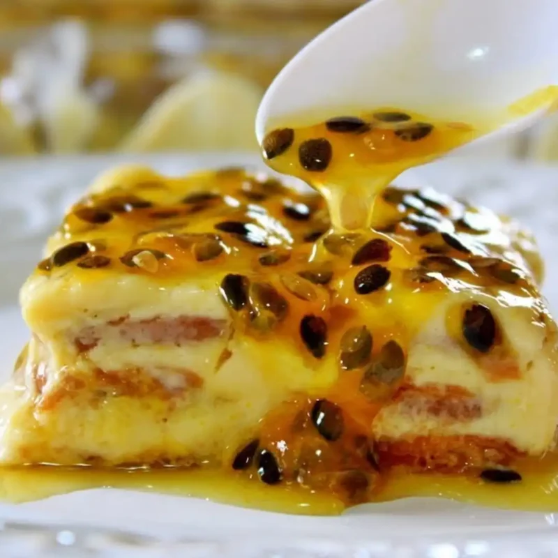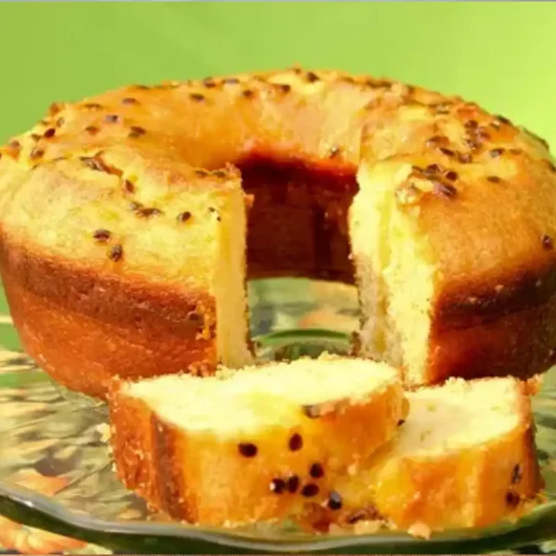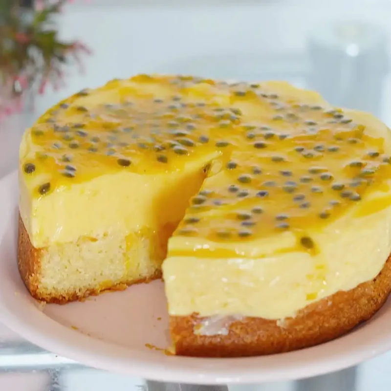 BOLO FEITO COM MARACUJÁ E COBERTURA DE CREME DE NATAS -